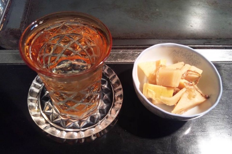 サービスで鳥とナスの煮たもの(どんぶり?こどんぶり?で)もいただいている