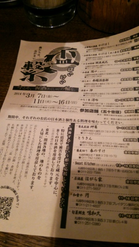いつも何杯呑むかを告げて適当にだしてもらっている なので1杯目は爽やかで徐々に日本酒らしいのに向かう