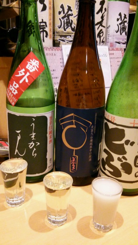 どぶ(奈良)→美富久(滋賀)→うまからまんさく(秋田) 飲みくらべ3種類 980円