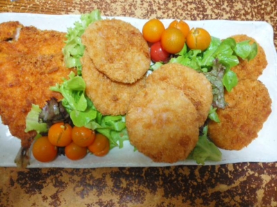 カツ、ナス、ピーマンのフライ