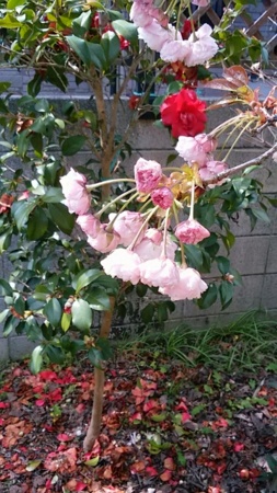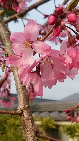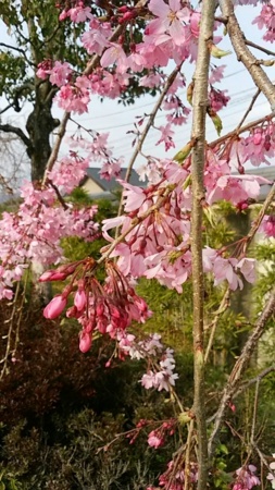 うちのボタンザクラ 日が高くなり暖かくなって上の方も開いてきた。 この分だと明日か明後日には満開になりそう。