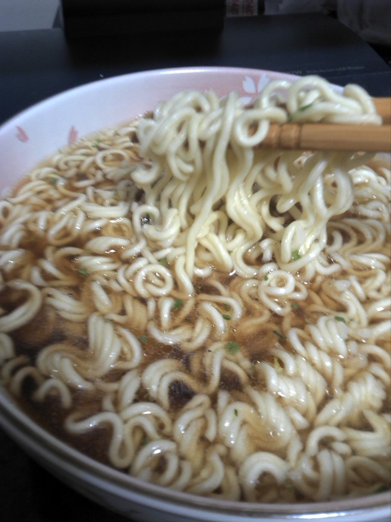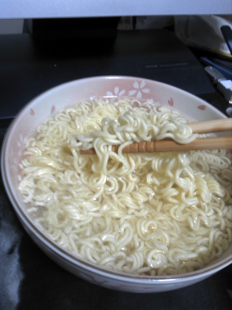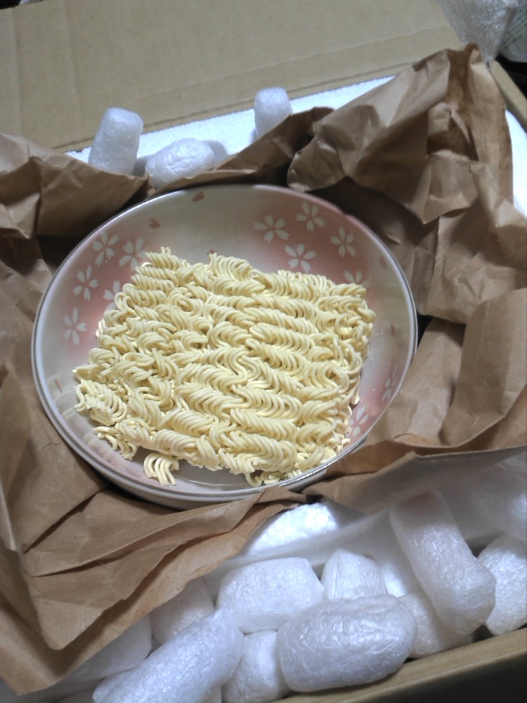 セブンゴールド金の麺。 鍋でも標準5分と戻しにくい麺。 梱包式では30秒程度長めに置くといい感じ。