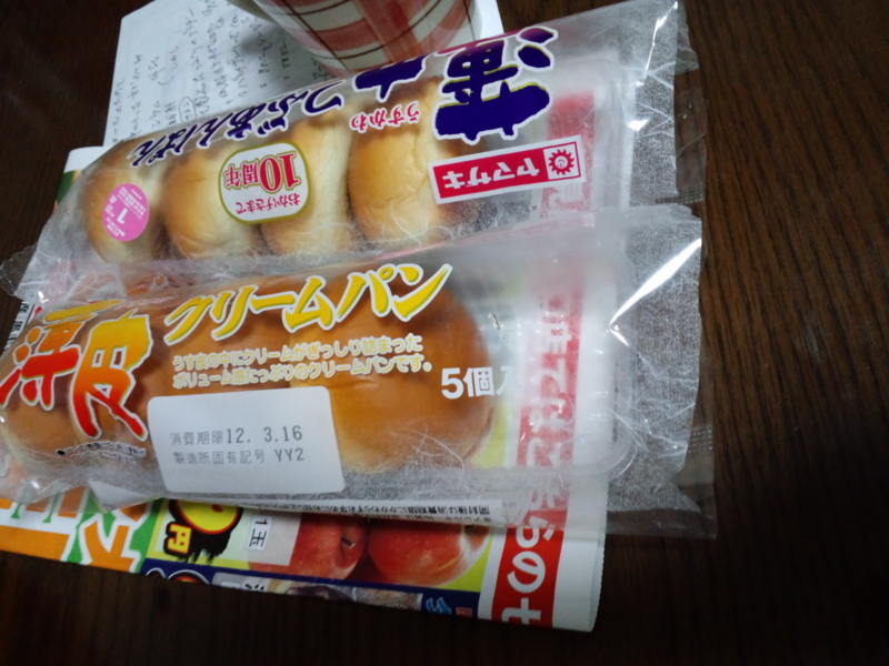 昨日のスーパーのプレオープンで買った、二つで150だったパン。両方口を開けて一つずつ食べたみたいです。お楽しみですこと。