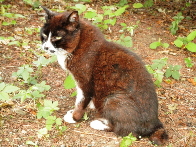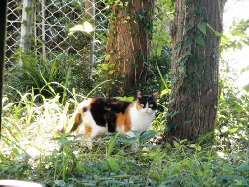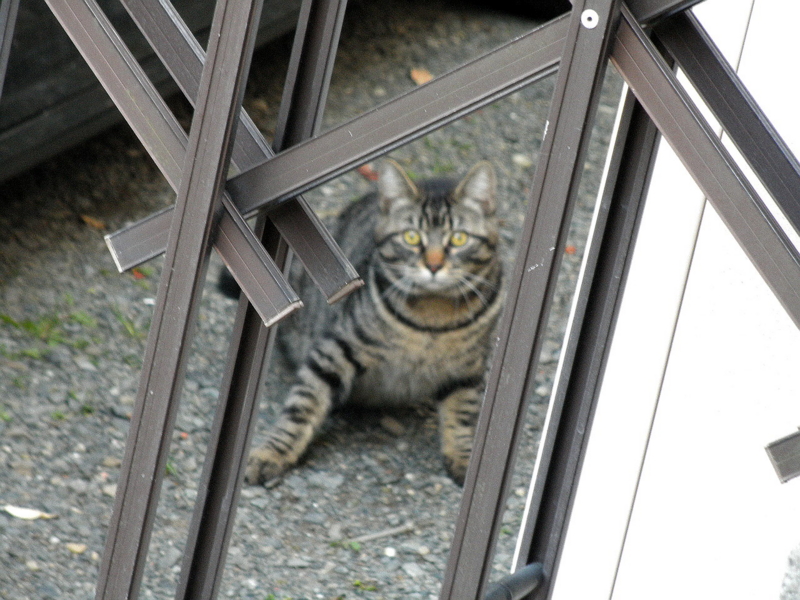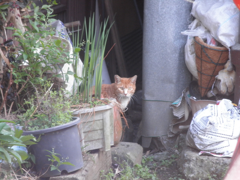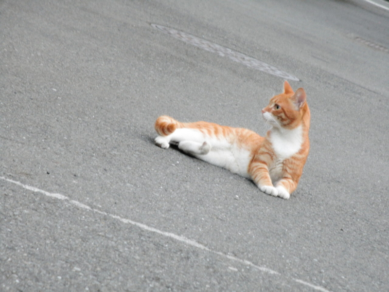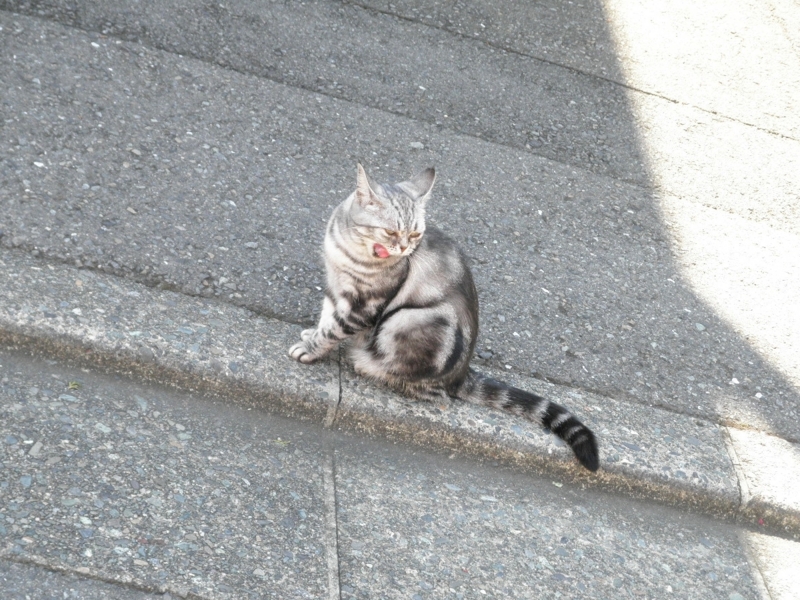朝から家の外でごろにゃーおと声がするので、カメラ片手に出てみたら、ちょうど猫が家の前を横切って行きました。