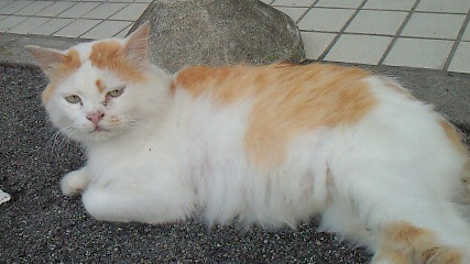 コンビニの前の駐車場でゴロゴロしていた。愛想は良くも無いけど物怖じしない。