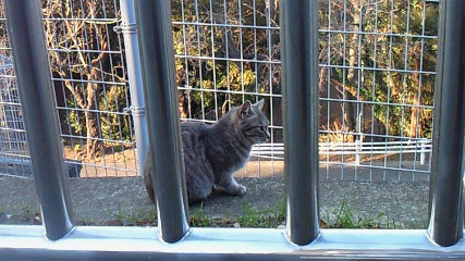 上の窓から見えると、うちの猫がダダーっと1Fの窓まで見に行くみたい。