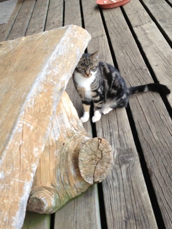 全部で5匹?(黒2トラ1縞白1白黒1)見かけたのだけど、唯一家の中に居た。