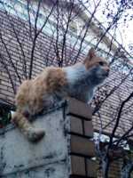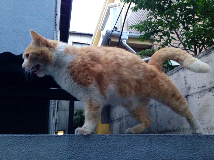 何かと思って振り向いたら、塀の上にヘビー級の猫さんがいた(^ω^)