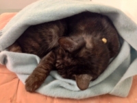 コピー用紙の箱で寝ぐらを作ってもらい、お気に入りのご様子。