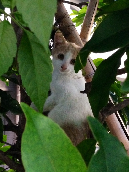 10日程前、茂みで何かが動いていると思って観察してみたら、可愛らしい子猫さんでした。