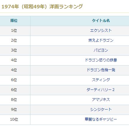 アマゾネスは1974年(昭和49年)洋画ランキング第8位
