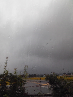 向こうは晴れているけれど、こちらは現在パラパラと雨が落ちる。