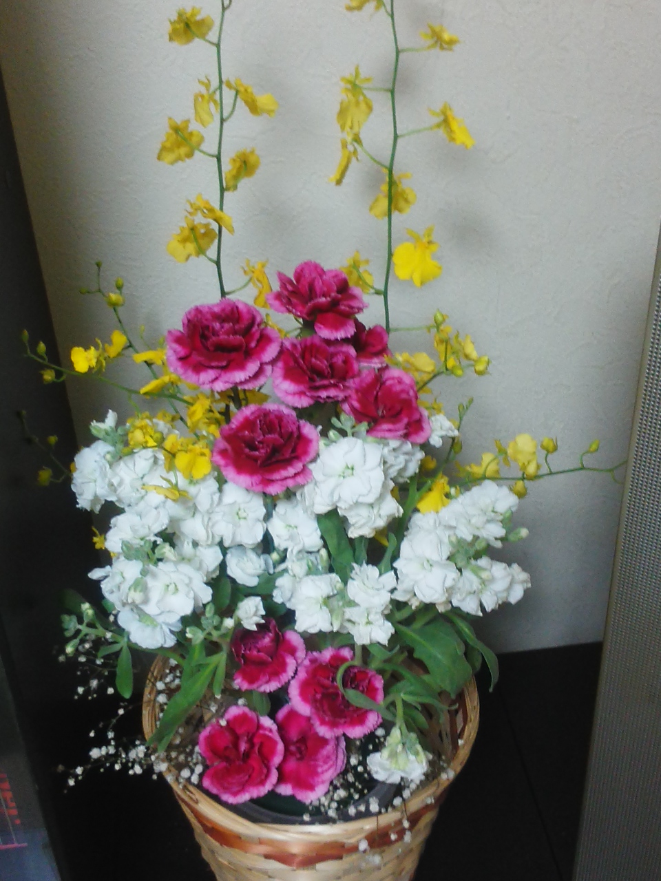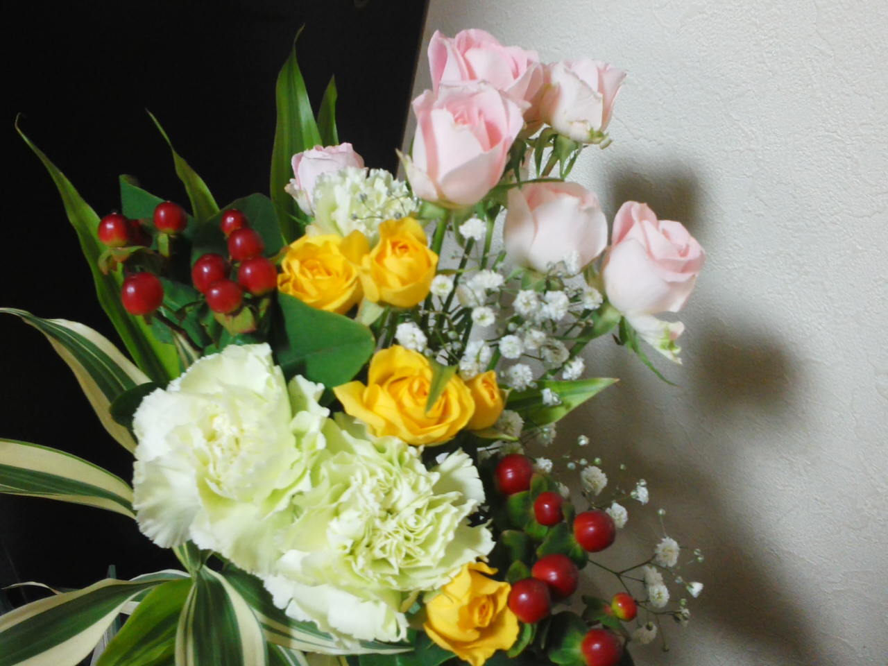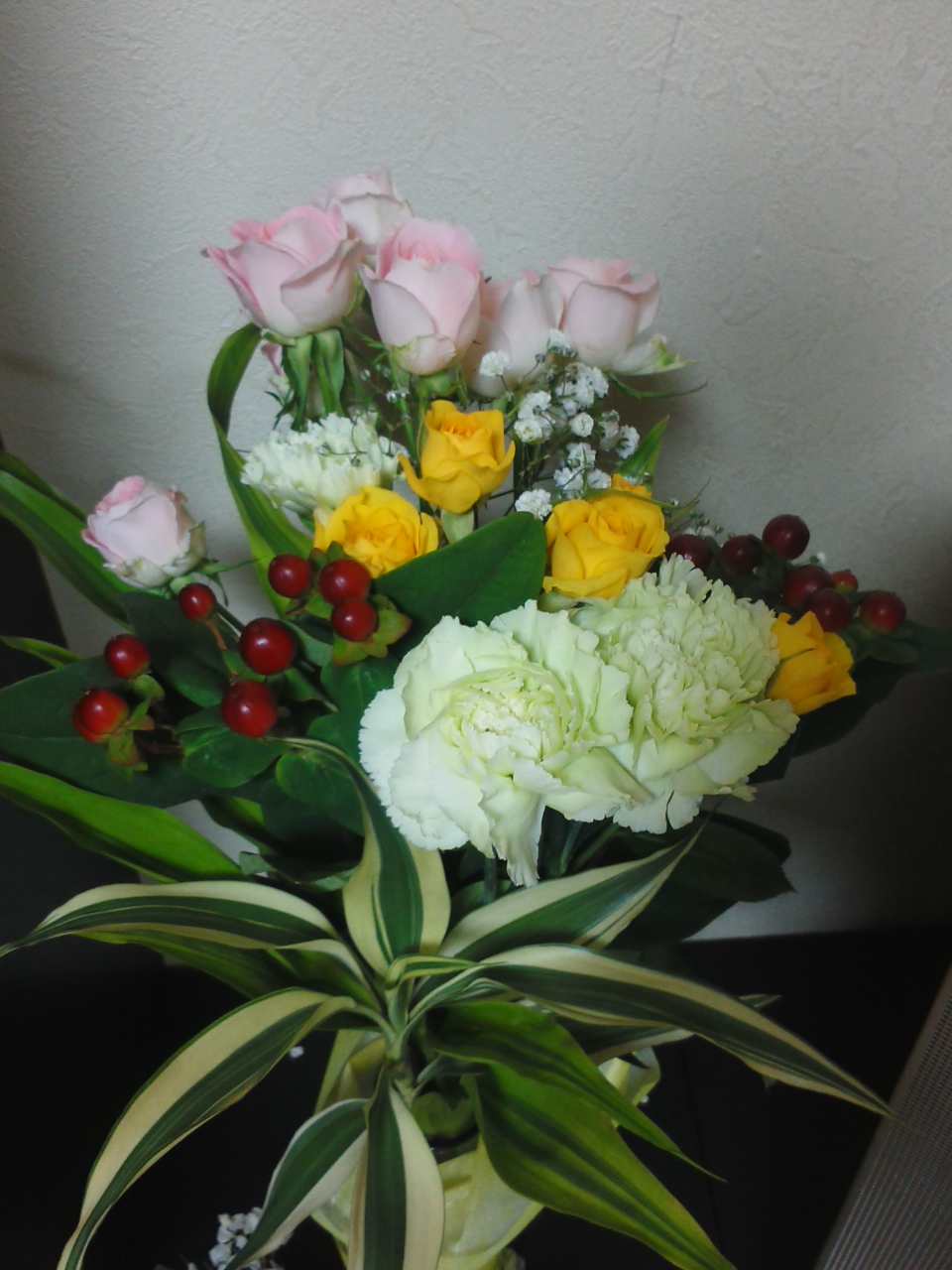 お正月に合わせ横でお父ちゃんが口だしするものだから、いっぱ~いの花束?になってしまいました(^^;)