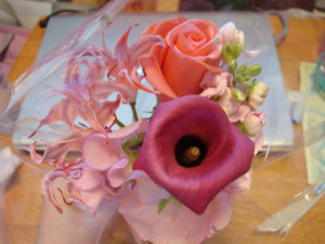 このお題なのか疑問を持ちつつもう1枚。 バラ(ですよね?)は一輪差しへ。