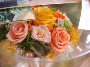 プレゼント用のプリザーブドフラワーなんです。綺麗なので差し上げる前に撮っときました^^