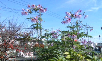 やっと咲き始めたが台風で半分倒れかかったり暑さにやられてたりとしんどそうです。