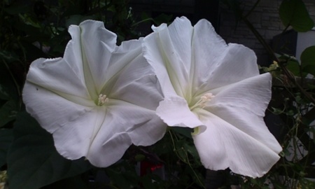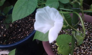 札幌にお嫁に行ったオーストラリアアサガオが種になって里帰りし、花が咲き始めました。昨年、花が梅雨の雨にあたってしまい、梅雨明け後は花付きが悪く種が取れなかったので、お里帰りの種で育てました。今年も虫さされの薬を作る事ができたのはnyannyanさんのおかげです。ありがとうm(_ _)m。