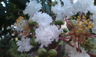 いつから咲き始めたのかサルスベリの花が散り始めている。最近、いい時期の花に出会ってない。というより出かけてない。山の花を撮りに行きたいなあ。