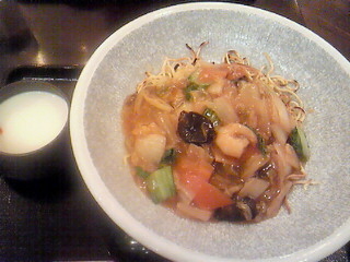 あんかけ焼きそばと杏仁豆腐食べるよー。