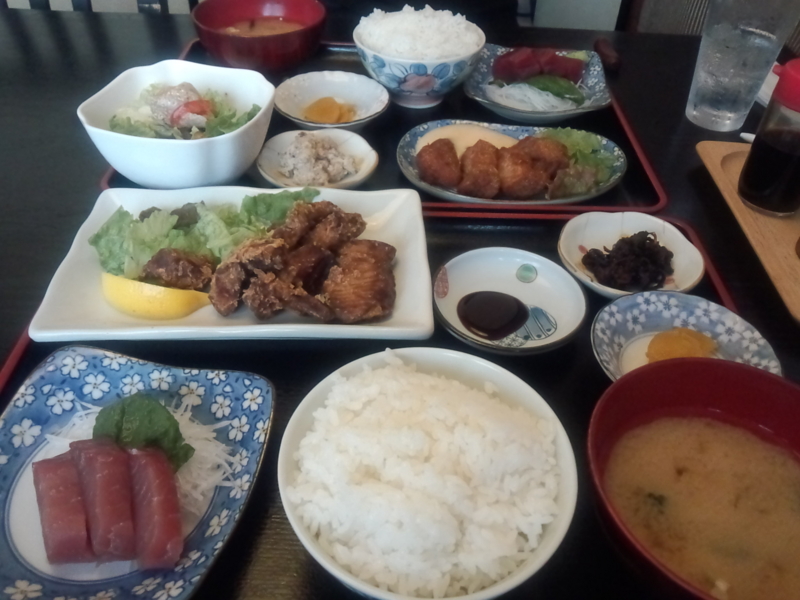 那智勝浦駅前のマグロのお店でマグロの唐揚定食。