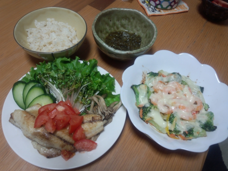 日替わり定食。天ぷらも煮物もマカロニサラダも