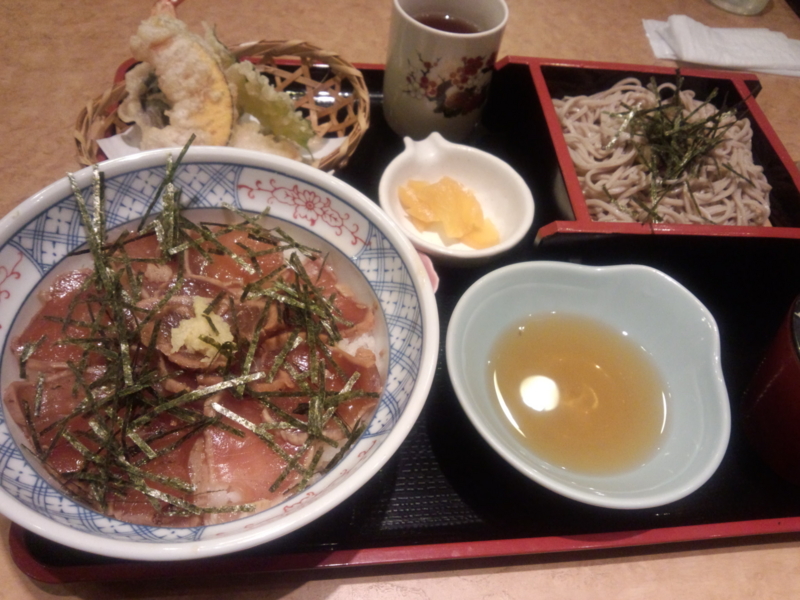炙りまぐろ丼頼んだらミニ天ざるがついてて