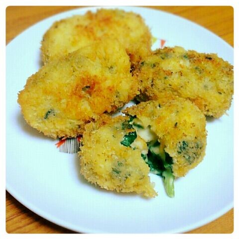 タネを凍らせなかったので不格好な、ゆで玉子とほうれん草のクリームコロッケ