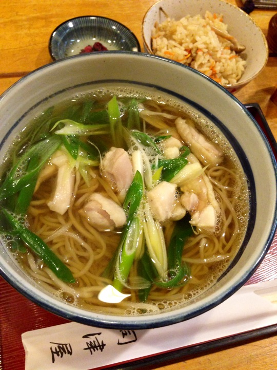 出町柳の司津屋さんでとりなんばそばとかやくごはんをいただきました。