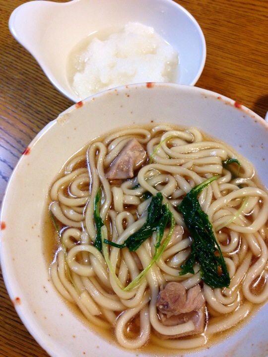 今日は「各自で夕飯を調達する日」だったので、冷凍庫で寝かせてあった稲庭風うどんを煮込みました。