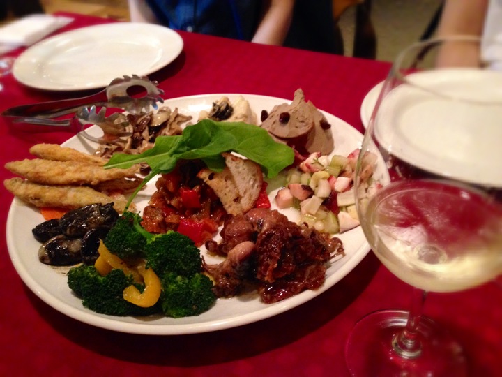 前菜盛り合わせ、パスタ2種、リゾット、デザートをいただきました。