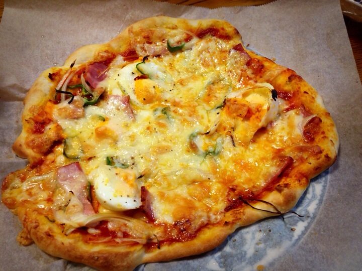 形は悪いけど生地の真ん中へんを薄く伸ばせたおかげか、食感も味も前回よりグレードアップしました♪( ̄¬ ̄*)