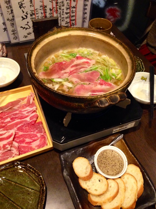 葱豚しゃぶしゃぶ、鶏の白レバーパテ、鎌倉野菜のバーニャカウダ、揚げ銀杏をおともに♪( ´▽`)