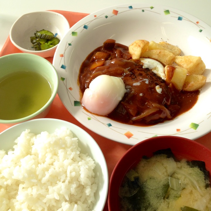 ハンバーグトマトソース定食、380円♪(´ε` )