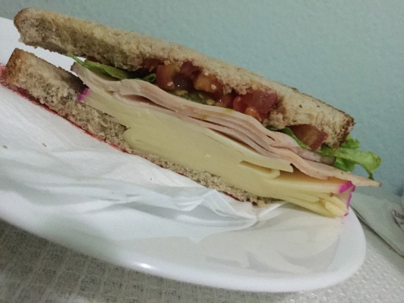 何層にも重なった薄切りチーズの分厚さ、おわかりいただけるでしょうか。ハムも野菜も入っているはずなのに、チーズの味しかしません。