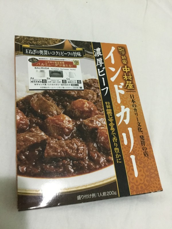 インスタントカレー、キュウリの酢の物、小さい黒パン。