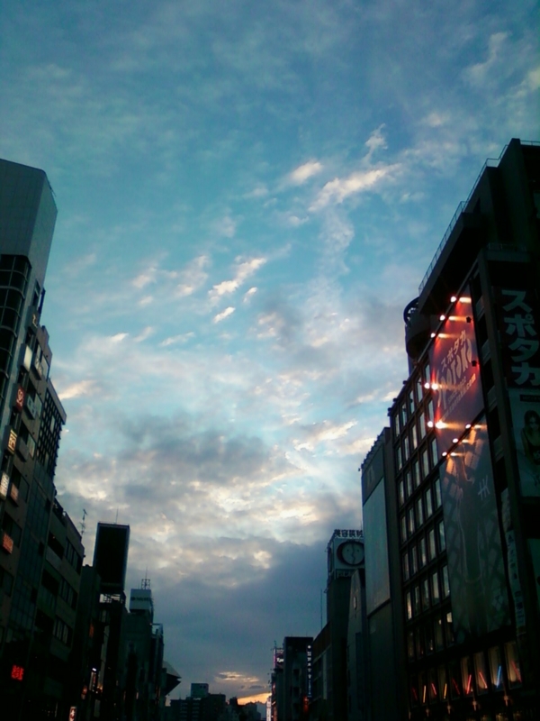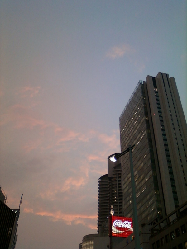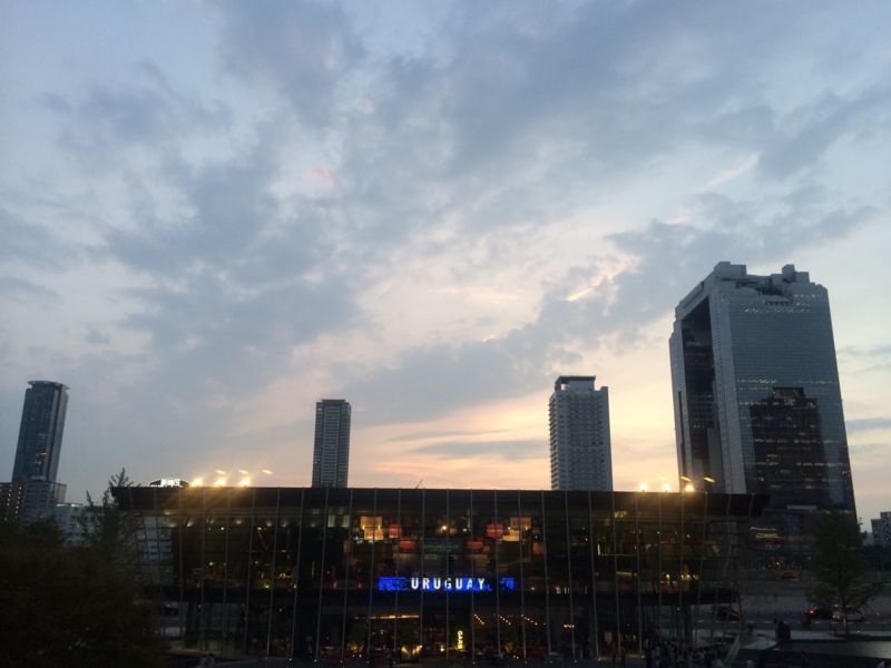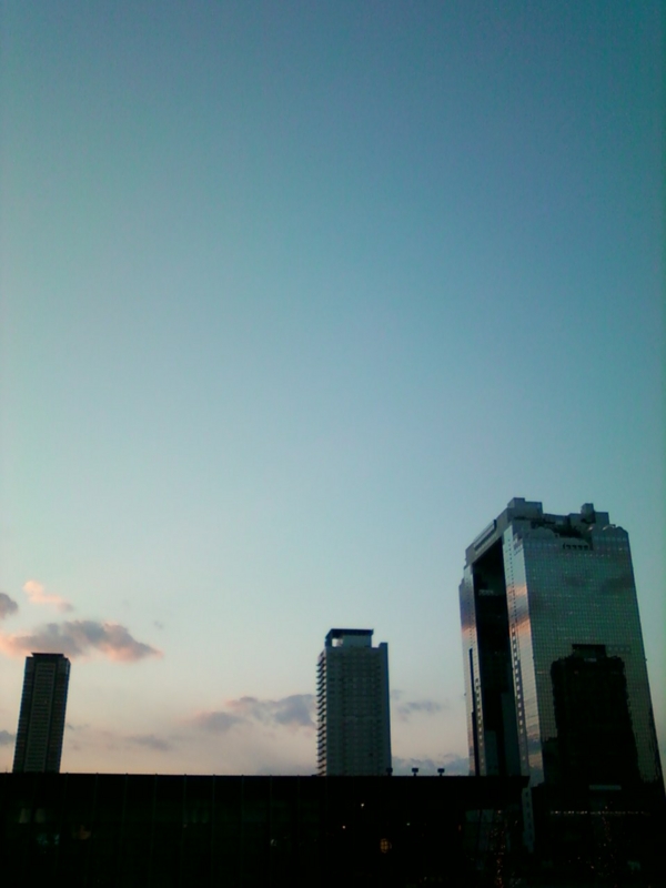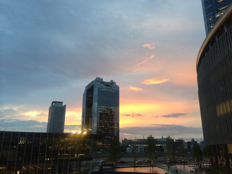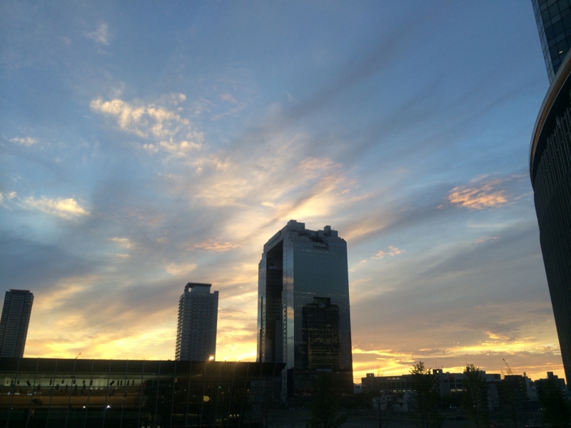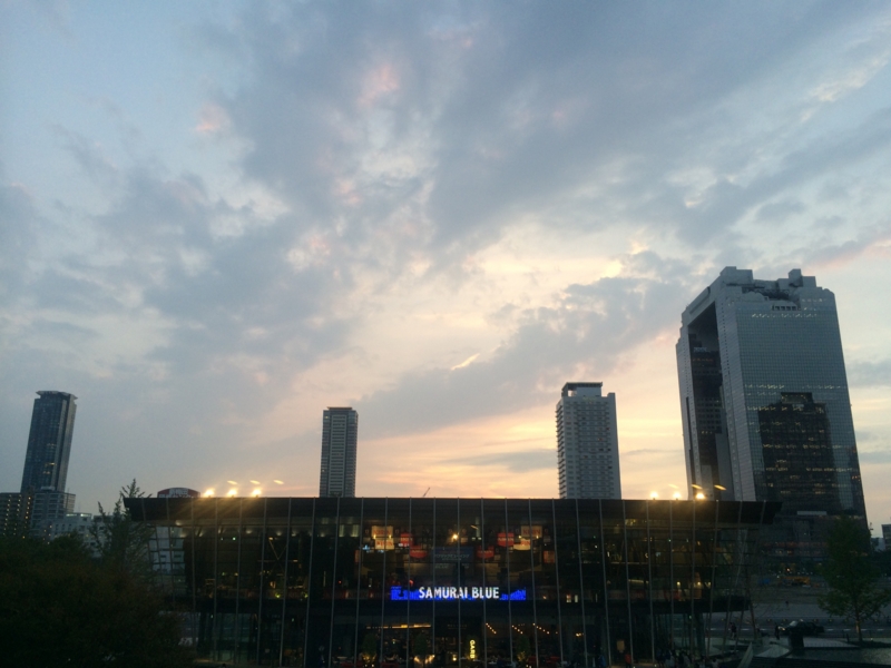 写真手前の建物(グランフロント大阪のとこ)で、今日の試合のパブリック・ビューイングがあるらしく、
