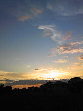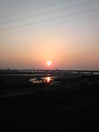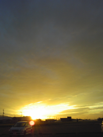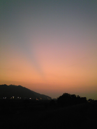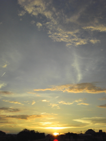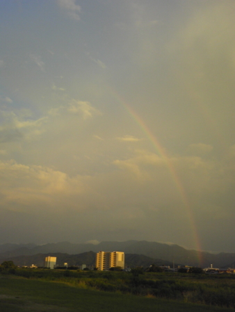 東の方から雨が降ってきて綺麗な半円の虹ができた。