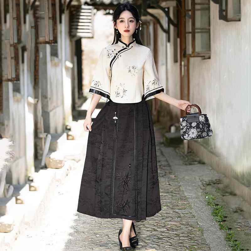 レディース チャイナ風 ツーピース シャツ 黒スカ…