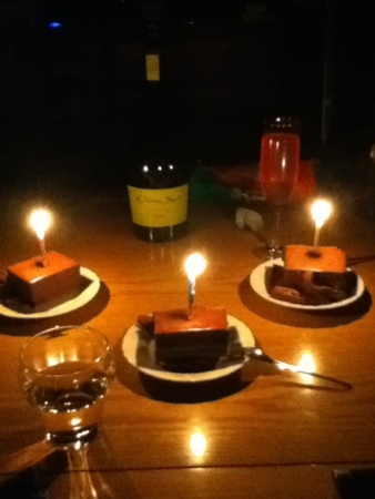 チョコレートケーキにコノスルのスパークリングとシャンメリーで乾杯。