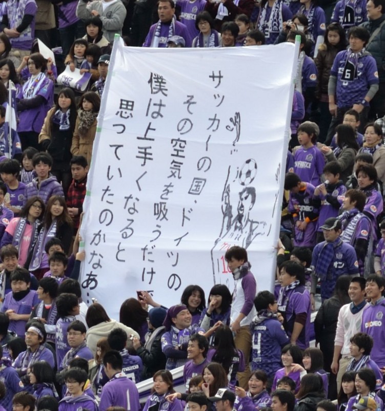 セレッソ側から「J1昇格おめでとう」横断幕