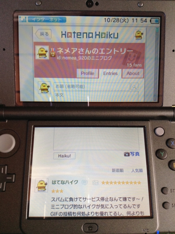 んで、やっとNew3DSLLのブラウザでハイクができるようになった!