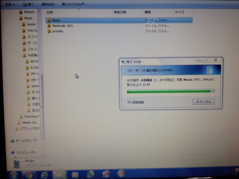 音楽ファイルなどをパソコンからコピーしたり、microSDカード内の写真データを