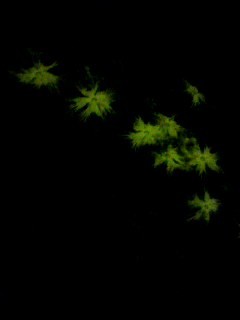 闇の中、ちぎったガーゼ片みたいにカラスウリが咲いてる。