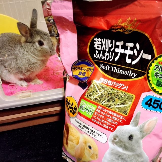 やっぱり、倍するチモシーのが食いつきが良い。