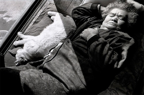 80歳過ぎのおばあちゃんと、真っ白い猫。