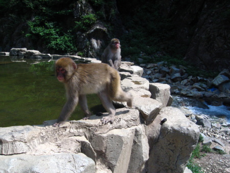 長野の湯田中の奥のほうの地獄谷というところに野猿公苑というのがあって、そこへいっていました。冬場は温泉に入る猿で有名なのですが、夏場はさすがに入浴はせず。この暑さなら、そりゃそうなんすが。