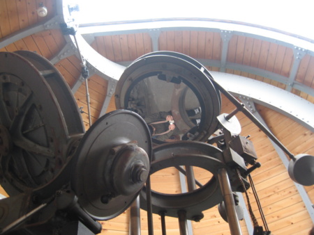 ○アインシュタイン塔ってのがあって、アインシュタインが太陽の重力によってスペクトルが変化するのではないか(ってイミフなのかもしれないのでもうちょっと書くと星の光が太陽のそばを通ったときに太陽の力で変化が起きるのではないか)、ということを検証するための施設として建設され(ただし三鷹では検証できなかった)、その後太陽の地場の観測等に使われた建物なんすが、公開していました。塔が望遠鏡のようになっていて