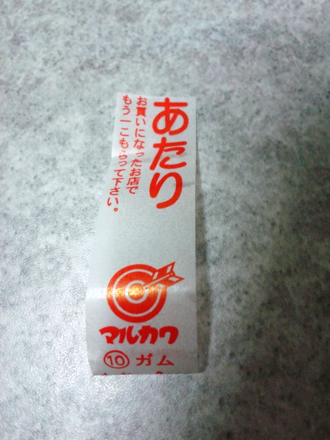 息子、神社の豆まきで得たガムであたりを出す。お買いになったお店はないけれど。
