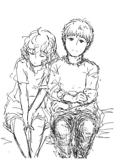 「保留で!」と答える依頼人らくがきを貼ります(アップか遠くか迷って両方描いてたの並べただけ)