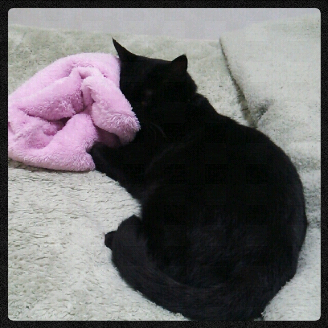昨晩零さんがお布団の真ん中でぬくぬく寝てらしたため、布団から半分はみ出て片方の背中が床に落ちる状態で寝ていたために背中が痛いです。